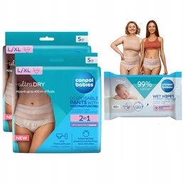 CANPOL Zestaw 2x Majtki Poporodowe 2w1 L/XL + Chusteczki Naw. 60szt. Gratis