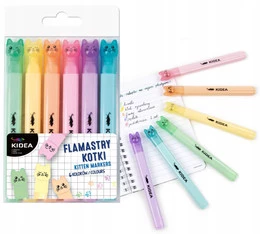 Zakreślacze Flamastry PASTELOWE Kotki 6 Kolorów Kidea