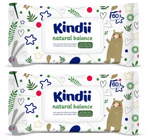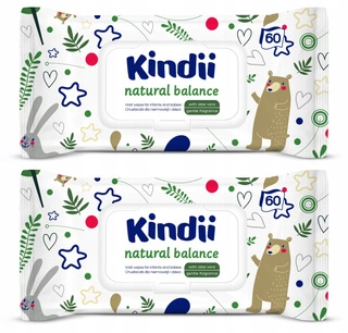 KINDII Chusteczki NAWILŻANE Natural Balance 60 szt. z Klapką x2