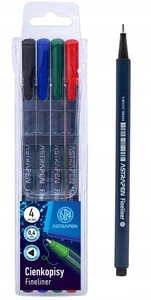 ASTRA Cienkopisy Trójkątne 0,4mm ZESTAW Czarny Czerwony Niebieski Zielony