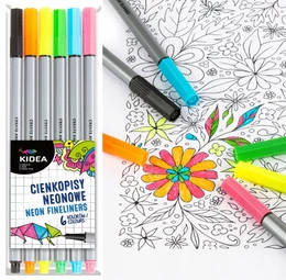 KIDEA Cienkopisy Kolorowe NEONOWE 6 Kolorów Precyzyjne