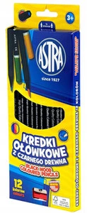 Kredki Ołówkowe Heksagonalne Z Czarnego Drewna Temperówka 12 kolorów Astra