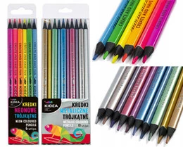 Kredki Szkolne NEONOWE i METALICZNE Trójkątne 16 Kolorów Kidea