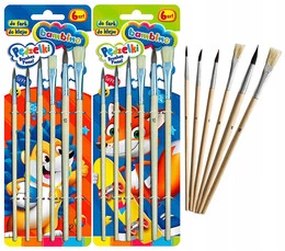 2x Bambino Pędzle Pędzelki Szkolne Zestaw Do Farb 6 Sztuk Bambino