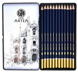 Ołówki Techniczne Do Szkicowania 12 Sztuk 8B-3H Metalowy Box Astra