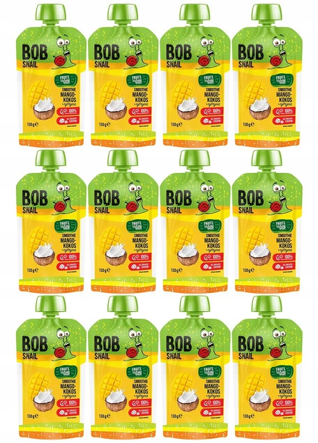Złóż zapytanie o cenę hurtową produktu |12x BOB SNAIL Smoothie MANGO KOKOS CYTRYNA Bez Dodatku Cukru Mus 120g