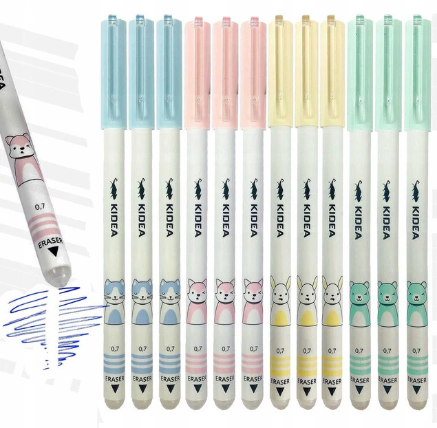 Opinie o 12x Długopis Wymazywalny Żelowy Niebieski 0,7mm ZWIERZAKI Kidea