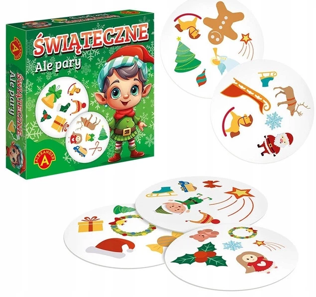 Zestaw gier 2w1, stworzony z myślą o rodzinnych świętach i zimowych wieczorach! W skład zestawu wchodzą dwie popularne gry: 'Ale Pary Świąteczne', która rozwija pamięć i spostrzegawczość podczas poszukiwania świątecznych par, oraz 'Dzieci kontra Rodzice: Zimowe Zagadki', gdzie rodziny rywalizują, rozwiązując zabawne i edukacyjne zagadki. Obie gry są doskonałe dla dzieci od 4 roku życia, zapewniając mnóstwo radości i wspólnych emocji. Idealny wybór na zimowe dni pełne rodzinnej zabawy!