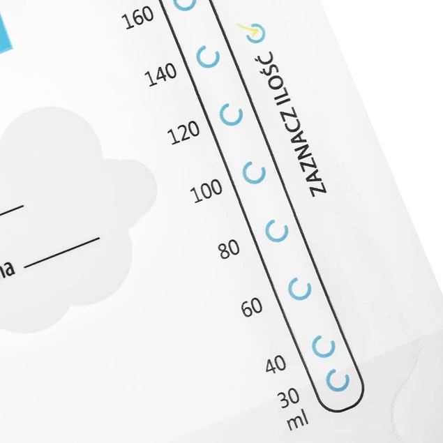 Jednorazowe, sterylne woreczki służą do przechowywania pokarmu w lodówce lub jego mrożenia. Szczelne, podwójne strunowe zapięcie ułatwia otwieranie i zapewnia bezpieczeństwo przechowywanego pokarmu, chroniąc jednocześnie przed przenikaniem zapachów. Dzięki miarce umieszczonej na woreczku można precyzyjnie odmierzyć odpowiednią ilość pokarmu, a na białej etykietce umieszczonej na woreczku można zamieścić notatkę o dacie, godzinie i ilości odciągniętego pokarmu.