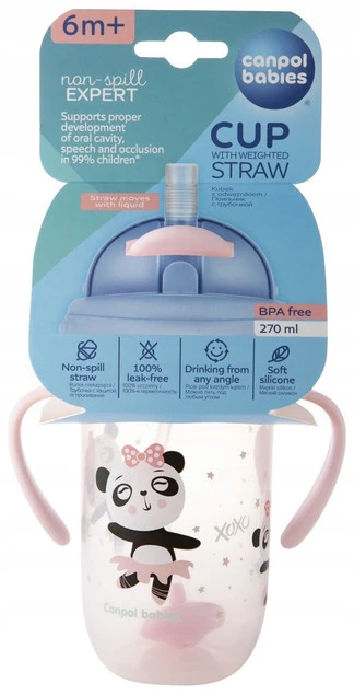 Odważnik umieszczony na końcu rurki sprawia, że maluch wypije swój ulubiony napój do ostatniej kropli, niezależnie od tego, pod jakim kątem przechyli kubeczek. Dzięki temu początek nauki samodzielnego picia przebiega bez frustracji. Canpol kubek z odważnikiem 270 ml BONJOUR PARIS wykonany jest z bezpiecznego tworzywa wolnego od BPA