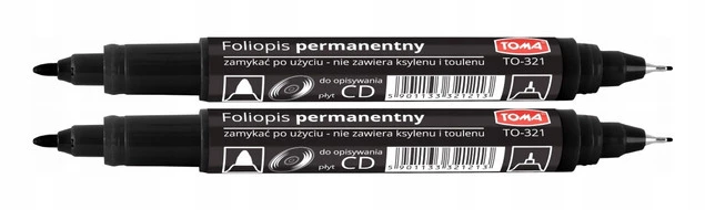 2x Marker Pisak Do Płyt CD DVD Toma TO-321 Dwustronny CZARNY