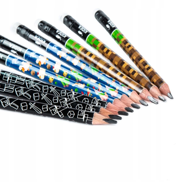 3x KIDEA Ołówek Trójkątny z Gumką HB MINECRAFT Game Pixel