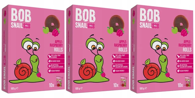 3x Przekąska Owocowa Jabłko Malina Bez Cukrów 100g BOB SNAIL