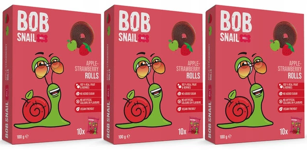 3x Przekąska Owocowa Jabłko Truskawka Bez Cukrów 100g BOB SNAIL