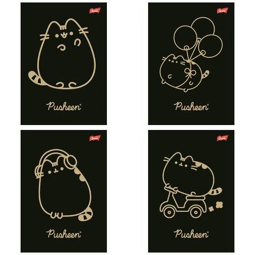 4 X ZESZYT A5, 60 KARTEK, KRATKA Z MARGINESEM, PUSHEEN BLACK, KOTEK KOT