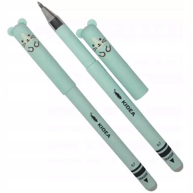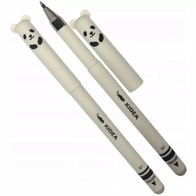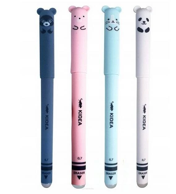 Wymazywalny długopis, wyróżnia go słodki zwierzęcy motyw z uszkami. Do wyboru: szop, panda, myszka i miś. Długopis wymazywalny idealnie sprawdzi się w szkole, ponieważ gumką w końcówce, można wymazać każdy popełniony podczas pisania błąd. Precyzyjna końcówka i przyjemny w dotyku, satynowy korpus sprawiają, że pisanie nim to czysta przyjemność.
