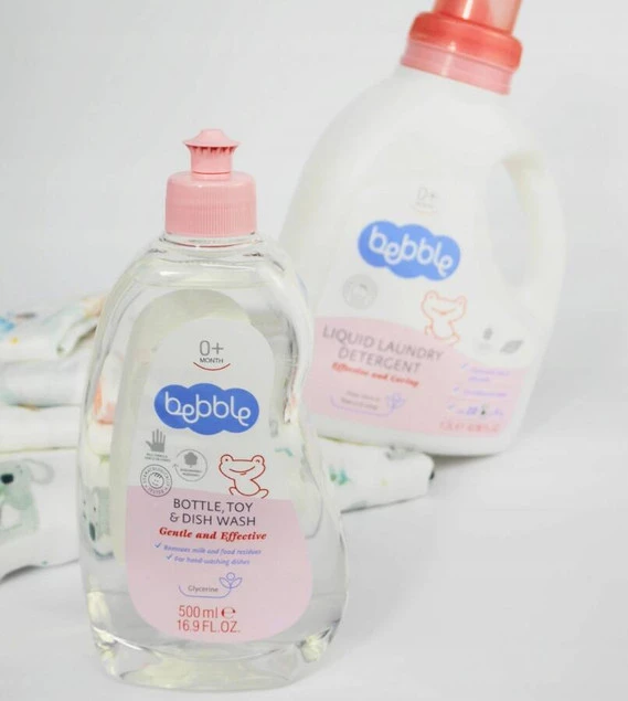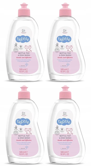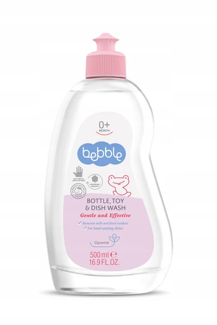 Bebble podaje pomocną dłoń w postaci płynu do mycia, który szybko czyści pozostałości jedzenia i mleka.