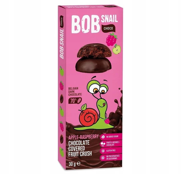 4x Ciasteczka BOB SNAIL Owocowe Jabłko Malina Truskawka W Czekoladzie 120g
