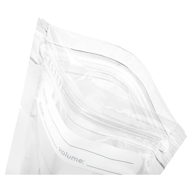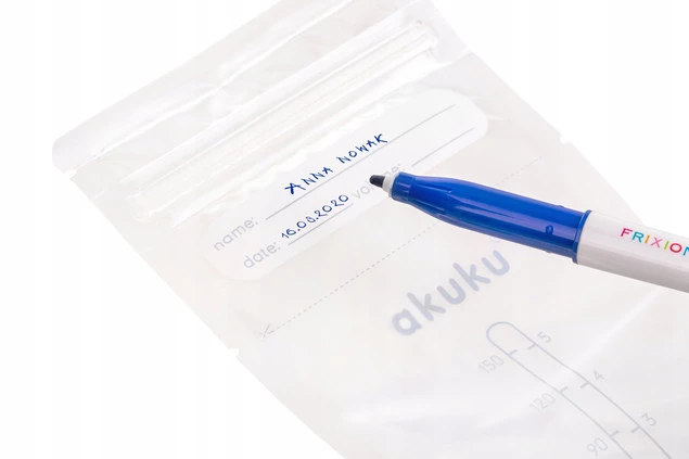 Woreczki posiadają białą etykietę, na której możesz zamieścić notatkę o dacie, godzinie i ilości odciągniętego pokarmu