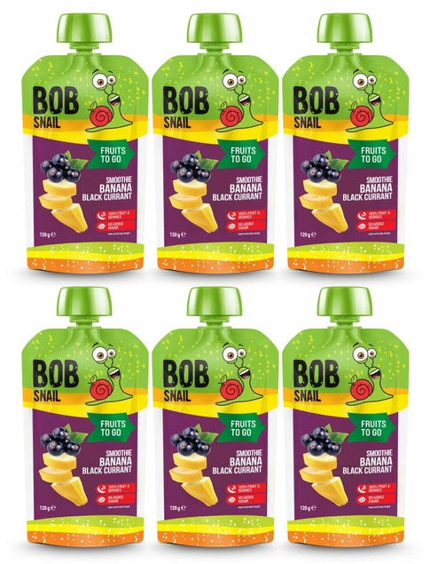 6x BOB SNAIL Smoothie BANAN Czarna PORZECZKA Bez Dodatku Cukru Mus 120g