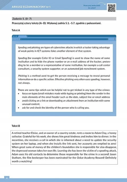 Ponadto, po zeskanowaniu kodów QR, uzyskasz dostęp do dodatkowych materiałów, takich jak nagrania i transkrypcje, klucz rozwiązań do każdego arkusza. Arkusze przygotowane przez doświadczonych nauczycieli języka angielskiego, związanych z Wydawnictwem GREG, to nieoceniona pomoc w przygotowaniach do egzaminu maturalnego.