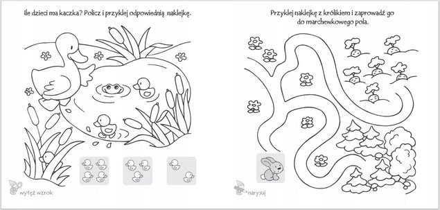 Rekomendowane przez Ośrodek Wczesnej Pomocy Psychologicznej w Krakowie ćwiczenia z naklejkami, rozwijające podstawowe sprawności dzieci w wieku przedszkolnym. Dużym walorem opracowania są zadania wspomagające procesy myślowe oraz ćwiczenia do nauki pisania i czytania, doskonalące analizę i syntezę wzrokową. Książeczki zawierają również zadania rozwijające sprawność manualną dzieci, m.in. wklejanie w odpowiednie miejsca naklejek, rysowanie po śladzie czy łączenie elementów.