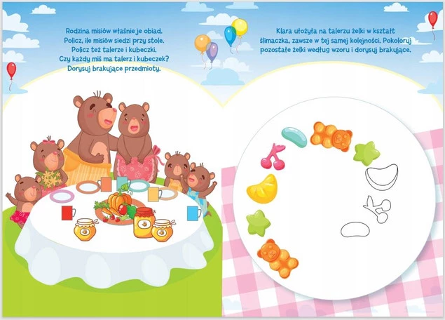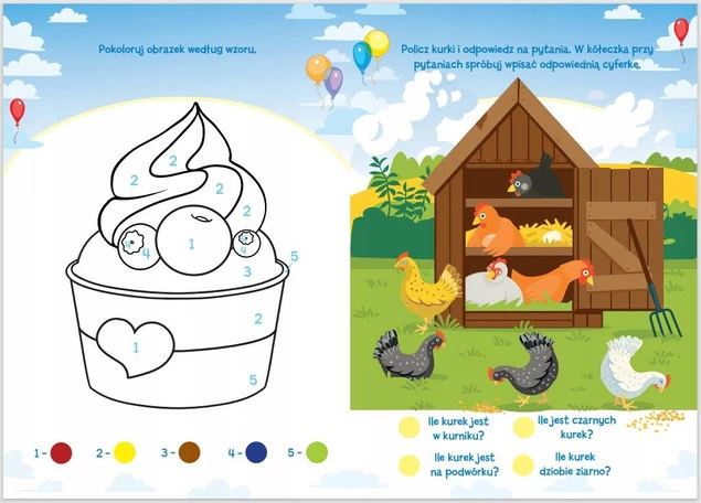 Rozrywkowy zeszycik zachęci do zabawy i ćwiczeń wspomagających rozwój każdego malucha. Dostosowane do wieku dziecka zadania pozwolą mu rozwijać spostrzegawczość i umiejętność kojarzenia. Rysowanie po śladzie i kolorowanie pomogą doskonalić sprawność manualną oraz przygotują rączkę do pisania, a zadania z cyferkami oswoją z liczeniem. Ciekawe ilustracje przyciągną uwagę, by uwrażliwić na szczegóły, kształty i wielkości.