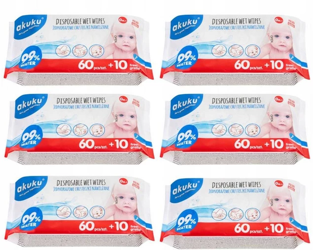 Złóż zapytanie o cenę hurtową produktu |Akuku Chusteczki Wodne 99% NAWILŻANE WODĄ 420 Sztuki Akuku A0031