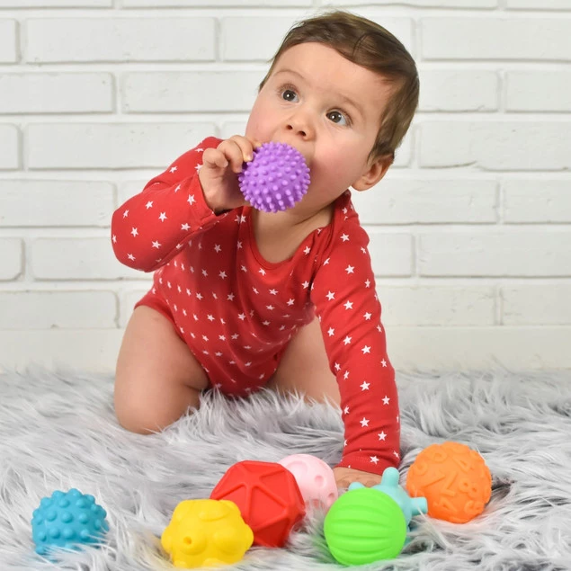 Dzięki zróżnicowanej fakturze każda piłeczka dostarcza dziecku innych wrażeń czuciowych.