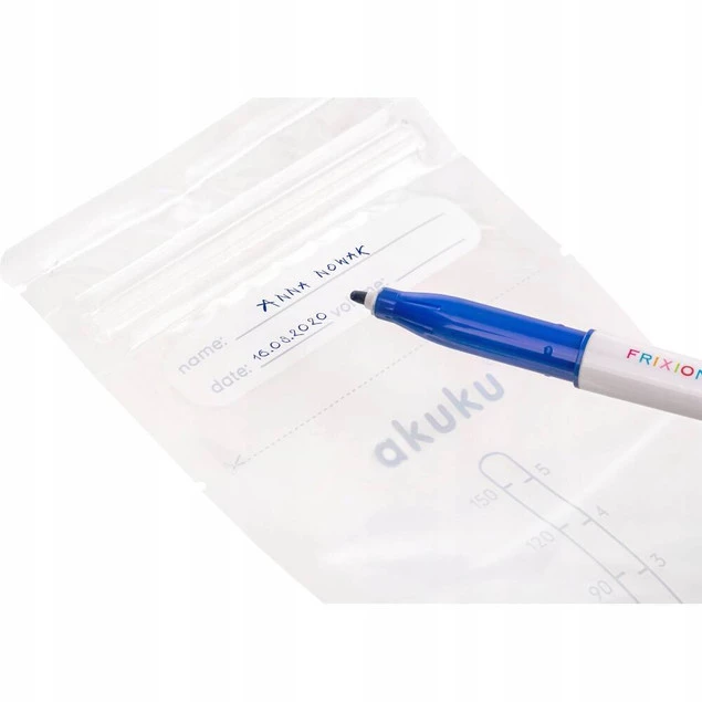 Woreczki posiadają białą etykietę, na której możesz zamieścić notatkę o dacie, godzinie i ilości odciągniętego pokarmu