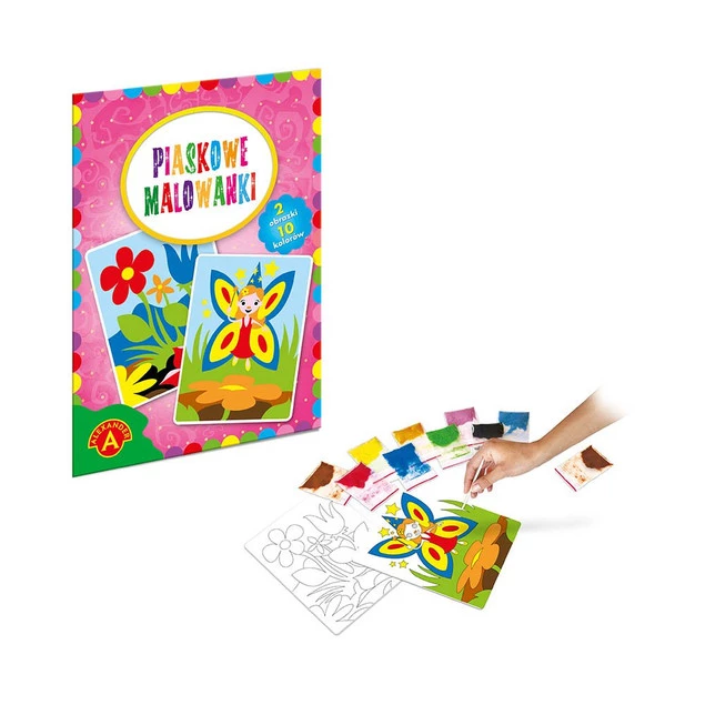 Uwielbiana przez dzieci, artystyczna zabawa malowania piaskiem, polegająca na odsłanianiu kolejno poszczególnych, naciętych elementów obrazka, tak by odkryć klejącą powierzchnię. Odsłonięte elementy posypuje się piaskiem, w kolorze zgodnym ze wzorem lub według własnej wyobraźni, tworząc piękną ilustrację.