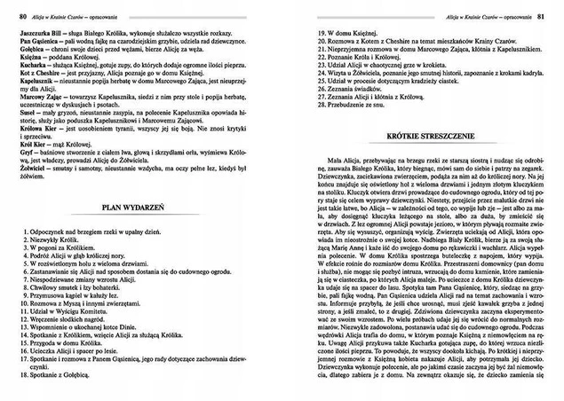 ✔Wydanie Alicji w Krainie Czarów kompletne bez skrótów i cięć w treści. W tym wydaniu znajdziesz odpowiedzi na pytania z podręcznika - "pewniak na teście", czyli wskazanie zagadnień, które zwykle pojawiają się w pytaniach z danej lektury we wszelkich testach sprawdzających wiedzę, a także w podręcznikach i na klasówkach. Książka zawiera pełen tekst lektury. Na końcu książki zamieszczono opracowanie, w którym znajduje się bardzo szczegółowe streszczenie oraz drugie skrócone, ułatwiające szybkie przygotowanie się przed lekcją. Opracowanie zawiera ponadto plan wydarzeń, wnikliwie wyjaśnioną problematykę oraz szerokie charakterystyki bohaterów.