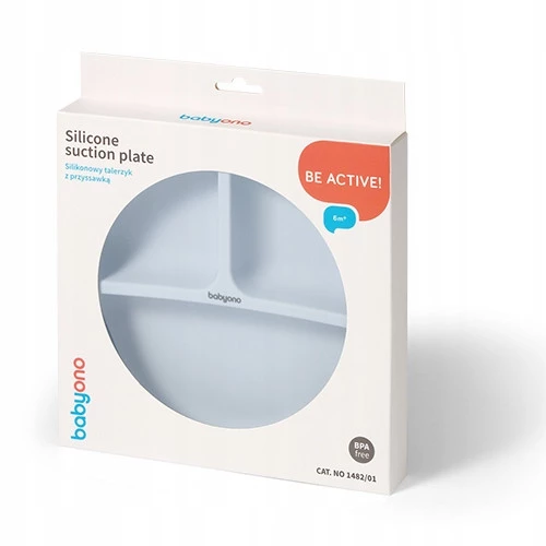 Talerzyk z przyssawką to idealne rozwiązanie podczas nauki samodzielnego jedzenia. Przyssawka minimalizuje ryzyko rozlania lub przewrócenia jedzenia. Ergonomiczny kształt ułatwia samodzielne nabieranie pokarmu.Trzy praktyczne przegródki zachęcają do zróżnicowanego jedzenia. Wykonany z wysokiej jakości silikonu, talerzyk jest bezpieczny dla zdrowia i łatwy w czyszczeniu. Można go myć w zmywarce i podgrzewać w mikrofalówce.