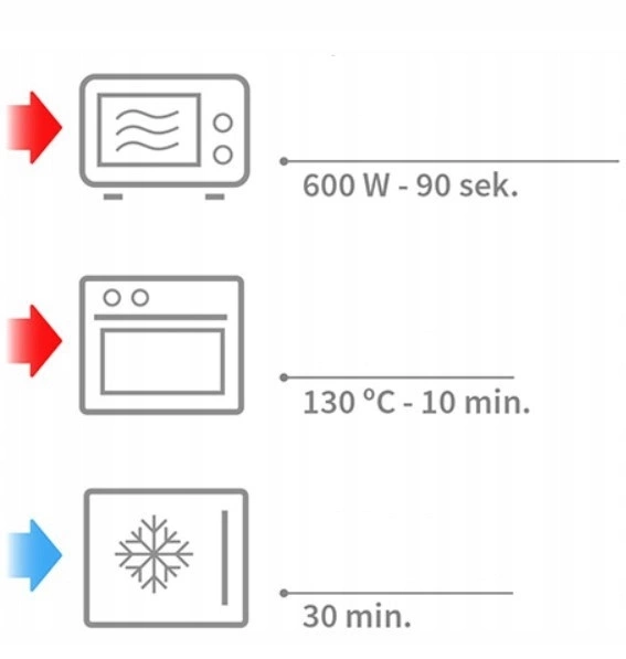 - Umieść wkład w kuchence mikrofalowej (600 W – 90 sek.), piekarniku(130° C – 10 min.) lub kaloryferze (aż będzie wystarczająco ciepły)