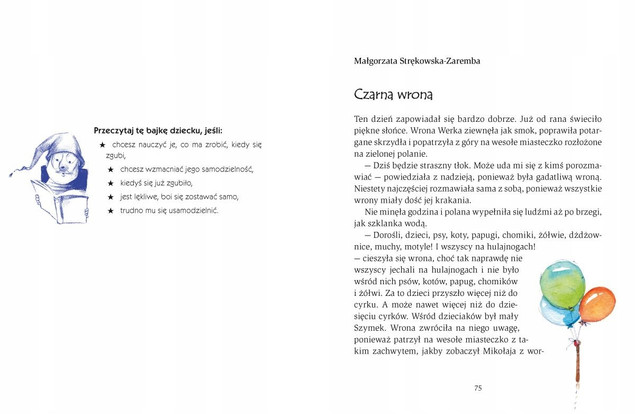 W drugim, poszerzonym i poprawionym, wydaniu bajkom towarzyszą wskazówki i komentarze eksperta od bajkoterapii – Katarzyny Klimowicz, które, mamy nadzieję, będą dla rodziców, opiekunów i dzieci pomocą, inspiracją do rozmowy, zabawy czy przede wszystkim wspólnego zastanowienia się nad takimi tematami jak: inność, spotkanie z nieznajomym, bezpieczeństwo nad wodą, zgubienie się, brak wiary w siebie, rywalizacja z rodzeństwem, bezpieczeństwo w domu.