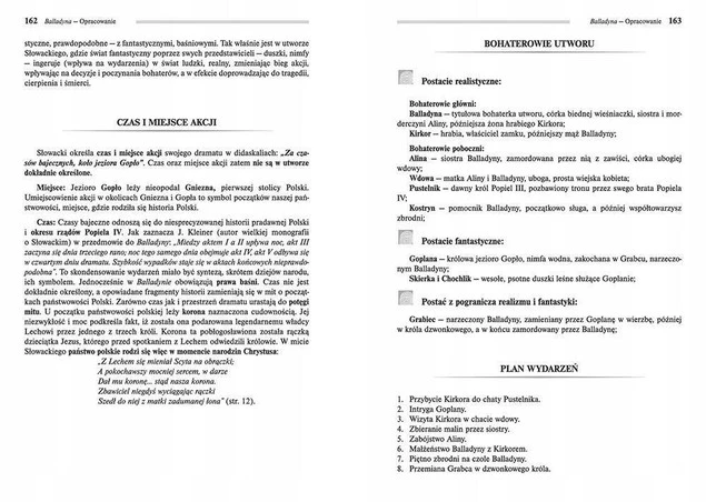 ✔Wydanie Balladyny kompletne bez skrótów i cięć w treści. W tym wydaniu znajdziesz odpowiedzi na pytania z podręcznika - "pewniak na teście", czyli wskazanie zagadnień, które zwykle pojawiają się w pytaniach z danej lektury we wszelkich testach sprawdzających wiedzę, a także w podręcznikach i na klasówkach. Książka zawiera pełen tekst lektury. Na końcu książki zamieszczono opracowanie, w którym znajduje się bardzo szczegółowe streszczenie oraz drugie skrócone, ułatwiające szybkie przygotowanie się przed lekcją. Opracowanie zawiera ponadto plan wydarzeń, wnikliwie wyjaśnioną problematykę oraz szerokie charakterystyki bohaterów.