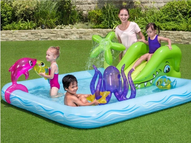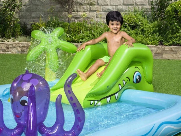 ✔️ Plac zabaw BESTAWY to idealne rozwiązanie dla najmłodszych pociech lubiących wodne zabawy na świeżym powietrzu wśród prawdziwych morskich zwierząt. Zestaw wykonany jest trwałego winylowego materiału.