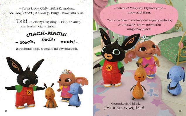 6 nowych, niepublikowanych wcześniej po polsku, opowieści o przygodach Binga i jego przyjaciół to wielka rzecz! Dołącz do Binga w jego domku z poduszek, przeczytaj o tym, jak się zakończyła zabawa z balonem i co się wydarzyło, kiedy Bing kichnął prosto w pudełeczko z magicznym pyłem Suli.