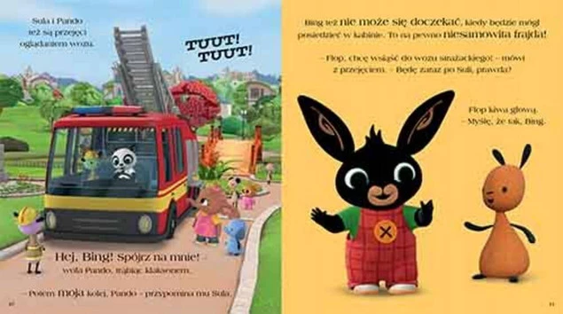 Dowiedz się, jak wyglądało spotkanie przyjaciół ze strażakami; zobacz zabawy na śniegu; baw się na przyjęciu urodzinowym Binga i odwiedź fantastyczny, ogrodowy domek do zabawy.
