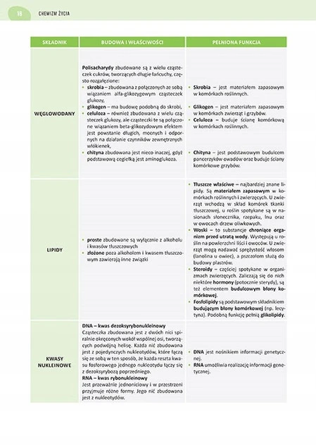 Cała wiedza została usystematyzowana w 17 działach - od chemizmu życia do ekologii i różnorodności biologicznej - dokładne według wymagań egzaminacyjnych. W książce zostały zawarte tylko treści potrzebne do powtórek przed maturą - nie ma tu niczego, co niepotrzebnie obciąża umysł wiedzą, która nie przyda się na maturze.