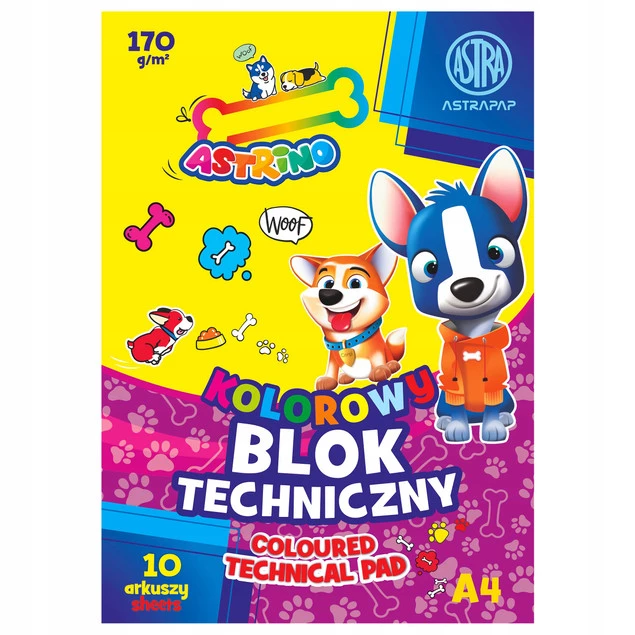 Blok Szkolny Techniczny A4 KOLOROWY 170g 10 Kratek Astrino