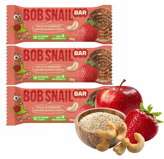 BOB SNAIL Batonik JABŁKO TRUSKAWKA NEROWCE QUINOA Bez Dodatku Cukru 35g x3