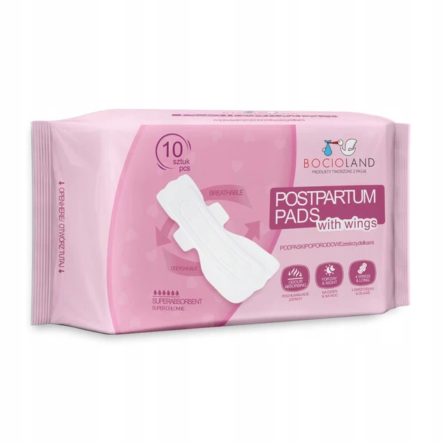 BOCIOLAND Podkłady Poporodowe WYSOKOCHŁONNE Podpaski Na Dzień Noc 10 Sztuk