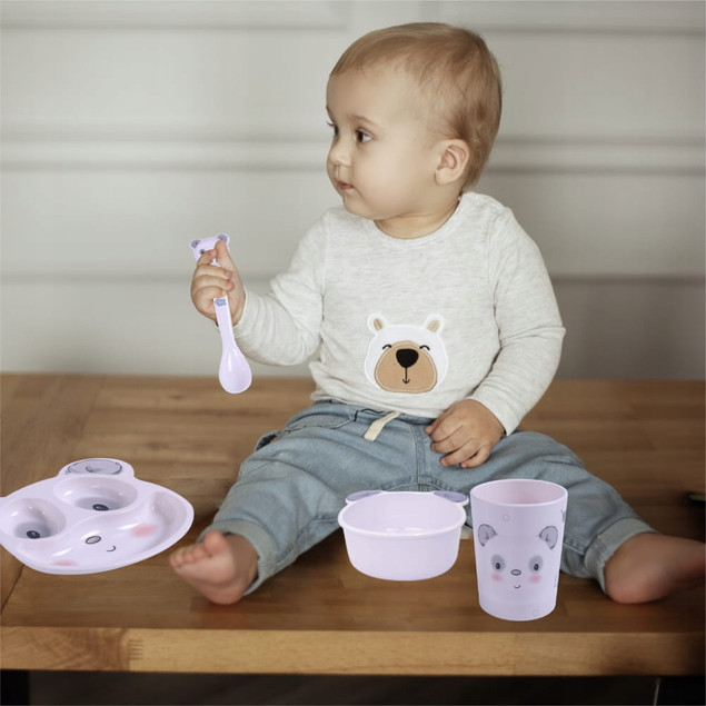 BOCIOLAND Zestaw Naczyń Dla Dzieci 5 Elementów PANDA Dla Maluszka
