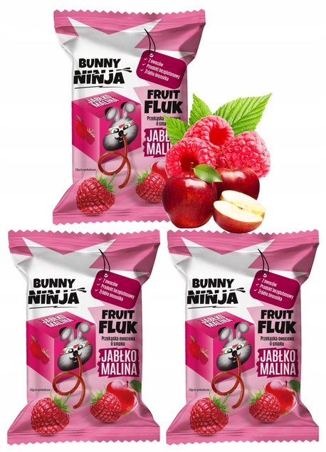 BUNNY NINJA Przekąska Owocowa JABŁKO MALINA Fruit Fluk 15g x3_1
