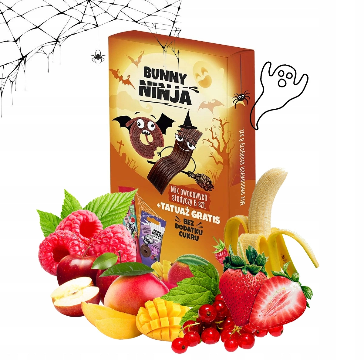 BUNNY NINJA Przekąski Owocowe Zestaw HALLOWEEN + Tatuaż MIX SMAKÓW 6szt.