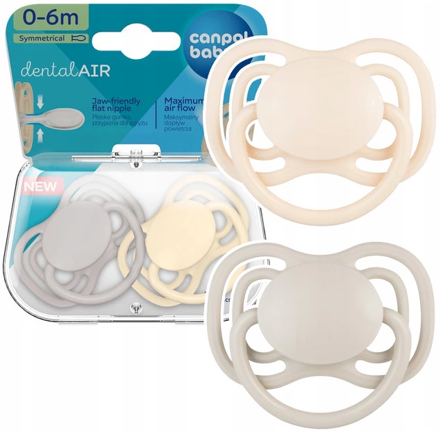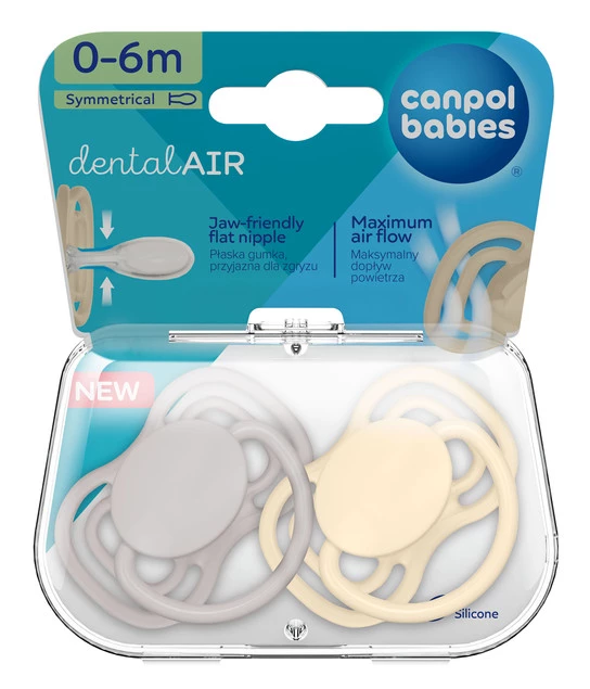 CANPOL BABIES Smoczek Silikonowy DentalAir SYMETRYCZNY 2szt Nude 0M+ 23/228