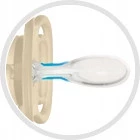 ![]() | Ultra płaska gumka zmniejsza nacisk na dziąsła i pozwala dziecku na niemal całkowite domknięcie ust. |