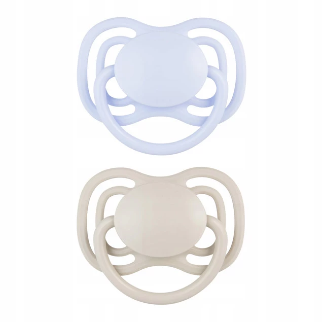 Gumka została wykonana z najwyższej jakości, bezpiecznego i delikatnego silikonu. Jest bezzapachowa i bezsmakowa. Tarczka zapewnia maksymalny dopływ powietrza, dzięki czemu zapobiega podrażnieniom na delikatnej buzi dziecka i minimalizuje ryzyko odciskania się smoczka. Specjalnie zaprojektowany kształt tarczki ułatwia również swobodne oddychanie i połykanie śliny. Smoczek jest bezpieczny i łatwy do utrzymania w czystości – nowoczesne etui, które może służyć do przechowywania, ale też do szybkiej i wygodnej sterylizacji w kuchence mikrofalowej. Wystarczy odrobina wody i 2 minuty by zapewnić smoczkom higieniczną czystość. Wygodny uchwyt smoczka pozwala na przymocowanie łańcuszka i ułatwia podanie go dziecku. Smoczek jest trwały i odporny na odkształcenia. W produkcji nie stosowano BPA ani innych szkodliwych substancji. Smoczek rekomendowany dla dzieci w wieku 6-18 miesięcy. Smoczek w modnych pastelowych kolorach jest dostępny w różnych rozmiarach – rośnie razem z Twoim Maluszkiem.