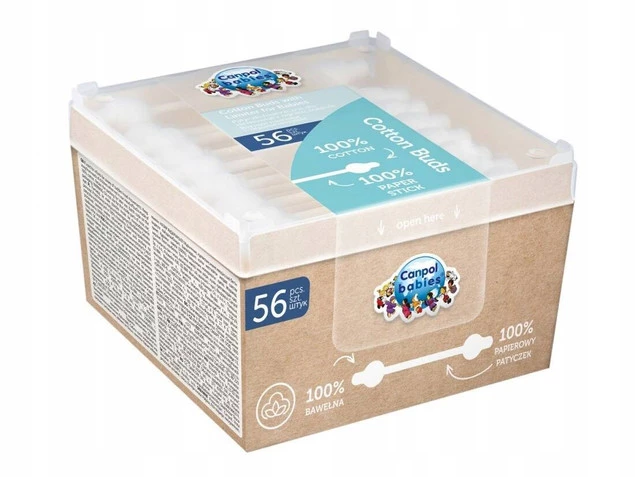 Wielofunkcyjne patyczki higieniczne zostały wykonane z delikatnej bawełny i papieru. Specjalny kształt główki z ogranicznikiem zapewnia bezpieczne użytkowanie. Papierowy patyczek jest ekologiczną alternatywą dla plastikowych patyczków. Doskonale nadają się do oczyszczania trudno dostępnych miejsc, ran i otarć. Są niezastąpione w codziennej pielęgnacji dziecka. W opakowaniu 56 sztuk.